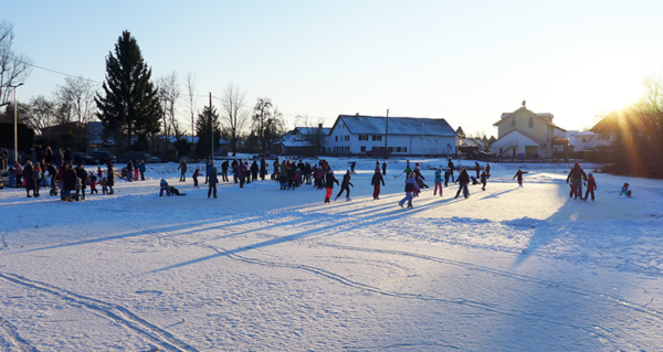 Anfangs noch mit gebührender Vorsicht, denn man weiß ja nie, ob das Eis trägt. Doch dann gibt es kein Halten mehr: die neuen Schlittschuhe von Weihnachten ausprobieren, Eishockey spielen, Eisstock schießen, Pirouetten drehen oder „nur“ ganz profan den Schlitten – natürlich mit Kind(ern) – hinter sich herziehen oder einen Kinderwagen schieben. Jeder und jede hat Spaß, es wird gelacht, geratscht und natürlich auf Kufen alles Mögliche ausprobiert.